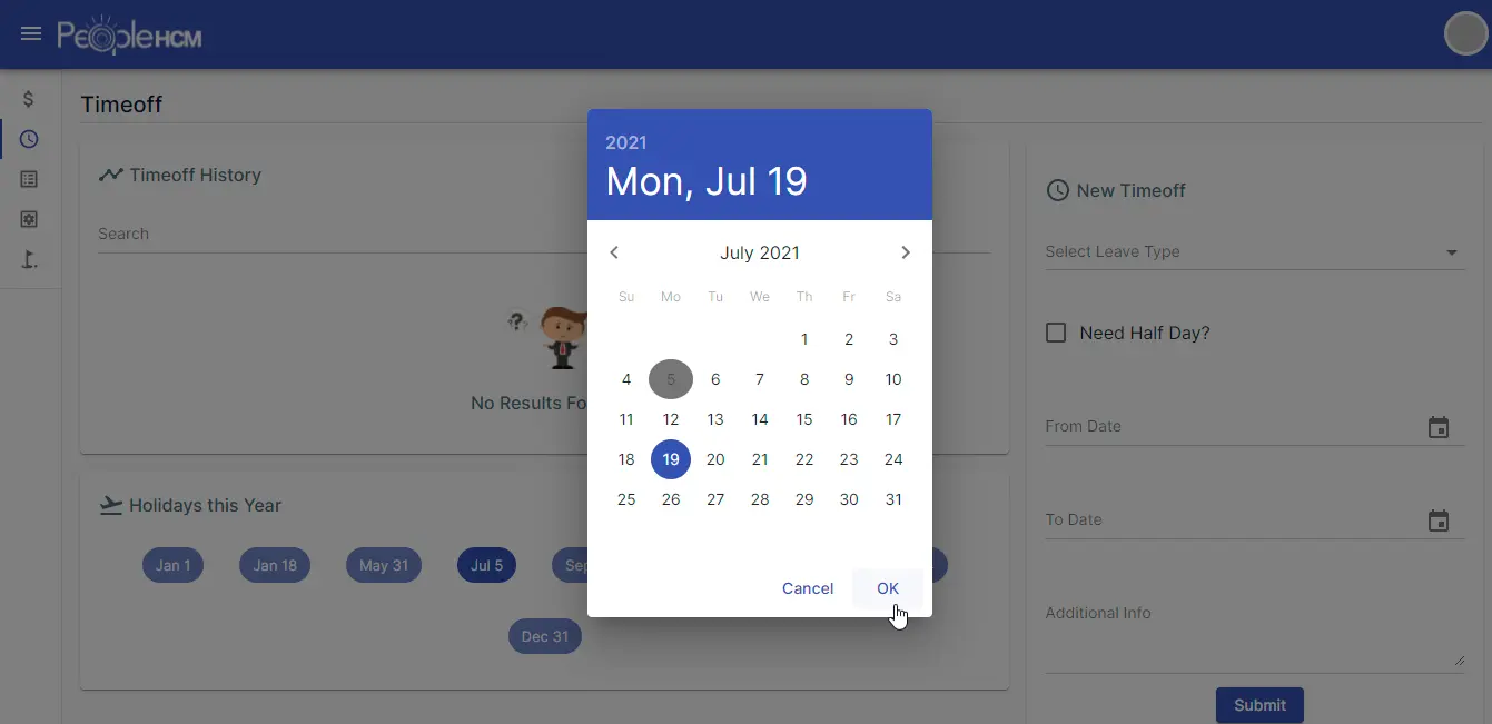 Apply for time off in simple steps – Select your date and time range, select leave type & submit!